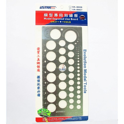 Stainless Steel scribing template with circles from 1.0 to 27mm diameter.